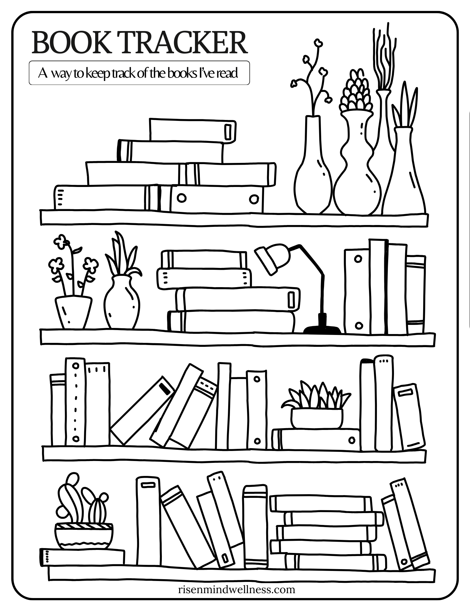Book Tracker Mar 21 Written By Risen Mind Wellness This downloadable PDF is a Book Tracker.Click here to download the PDF file.Or save the image for a PNG file. Risen Mind Wellness https://risenmindwellness.com