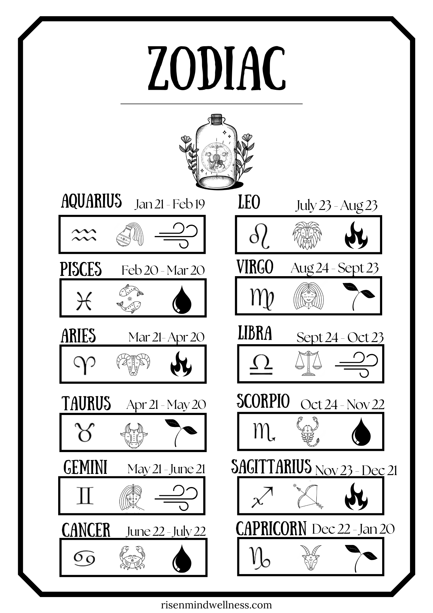 Zodiac Chart Mar 23 Written By Risen Mind Wellness This downloadable PDF is a Zodiac ChartClick here to download the PDF file.Or save the image for a PNG file. Risen Mind Wellness https://risenmindwellness.com